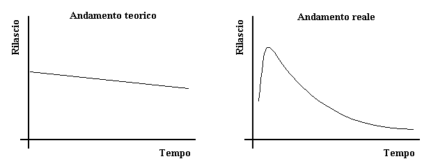 Fertilizzanti liquidi: vengono distribuiti con l’impianto di irrigazione e la pratica viene definita fertirrigazione. Se da un punto di vista tecnico la fertirrigazione può presentare alcune difficoltà, va però detto che essa consente di fertilizzare in accordo con lo sviluppo della pianta. E' infatti ovvio che le dimensioni e quindi l'assorbimento di nutrienti aumentano nel tempo, e la cosiddetta "nutrizione in stato stazionario" (Ingestad, 1982) è così facilmente realizzabile al contrario di quanto si possa realizzare con fertilizzanti a lenta cessione. Per di più con la fertirrigazione non si pongono i problemi che possiamo avere con i prodotti a lento effetto che, per quanto perfezionati, tendono comunque a rilasciare la maggior parte dei nutrienti nel primo periodo, quando la pianta non ha ancora un efficiente apparato radicale e non è quindi in grado di utilizzarlo, per poi entrare in crisi con l'azoto dopo 4-5 mesi (vedi figura sotto). La perdita di fertilizzante, già solubilizzato nell’acqua, è qui strettamente legata alla gestione dell’irrigazione: ogni ml di acqua che percola da un vaso o si perde nel terreno (nella piena terra) è di fatto una contaminazione dell’ambiente.